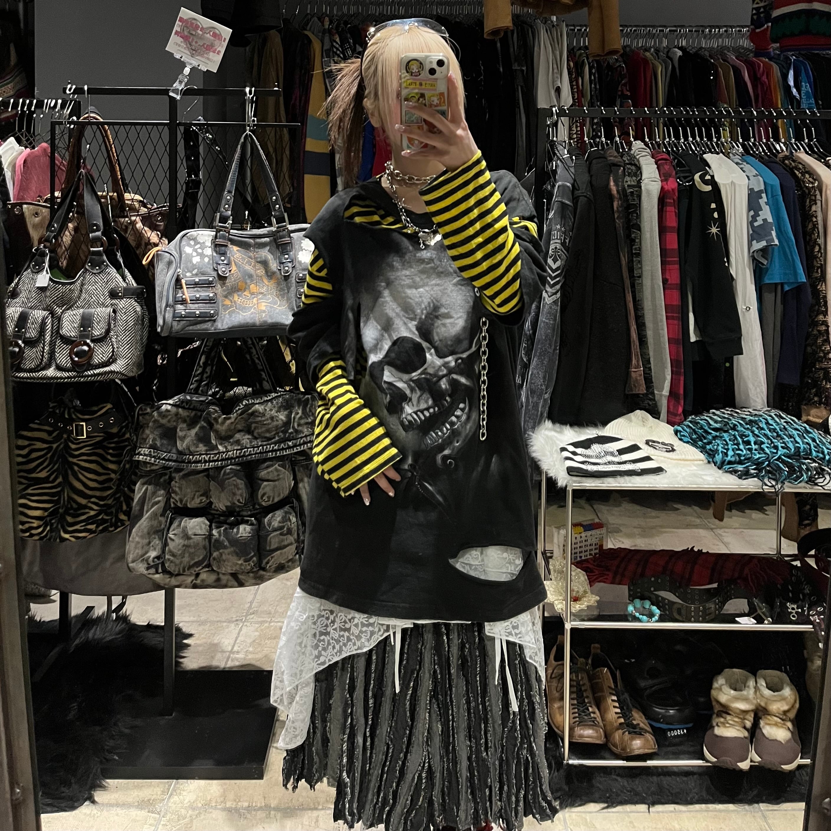 コーデ販売 3点セット グランジボーダー髑髏コーデ