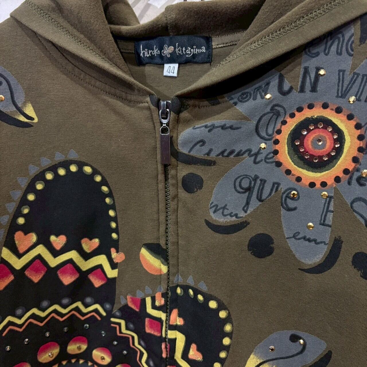 ラメ ジップパーカー カーキ 花