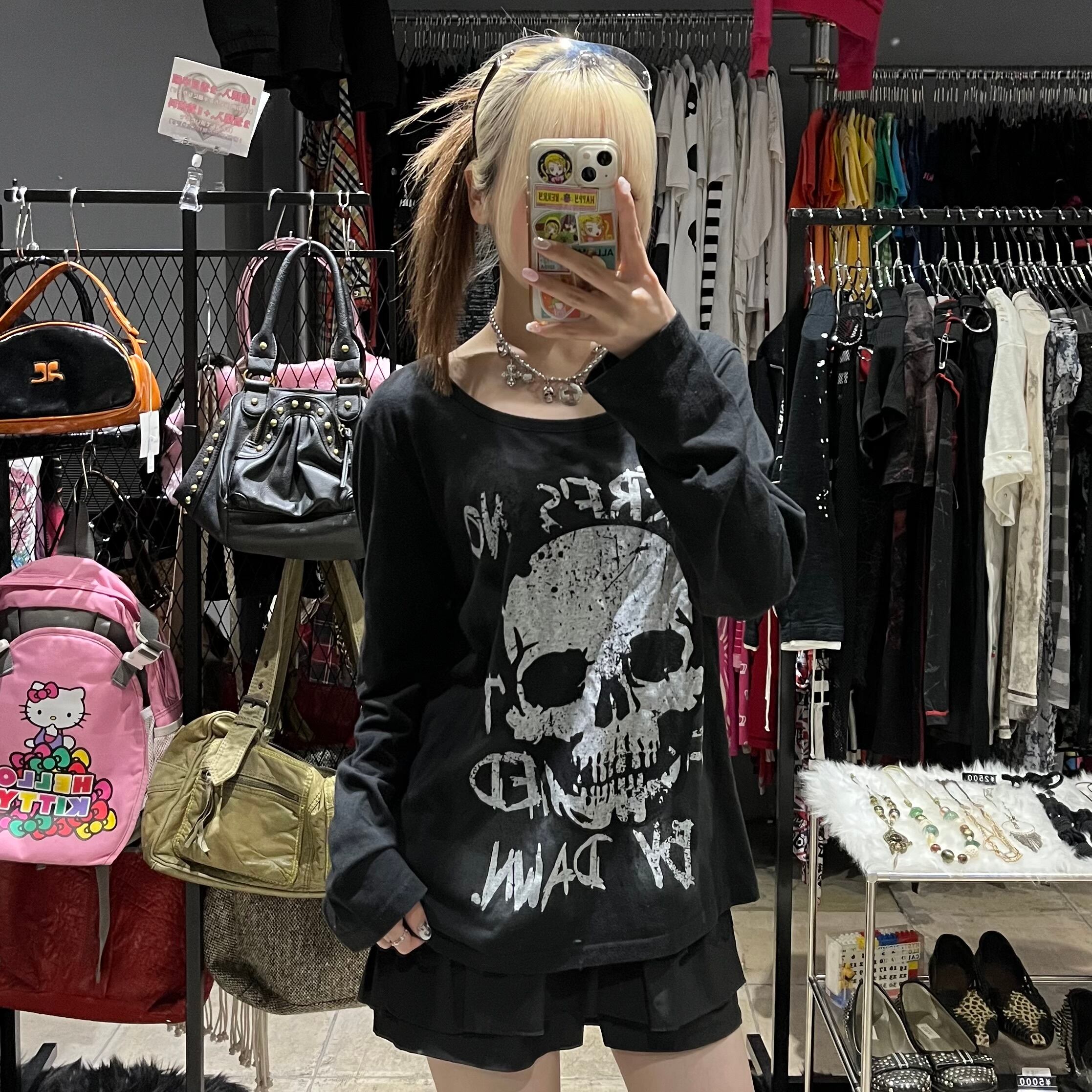 髑髏 かすれプリント ロンT
