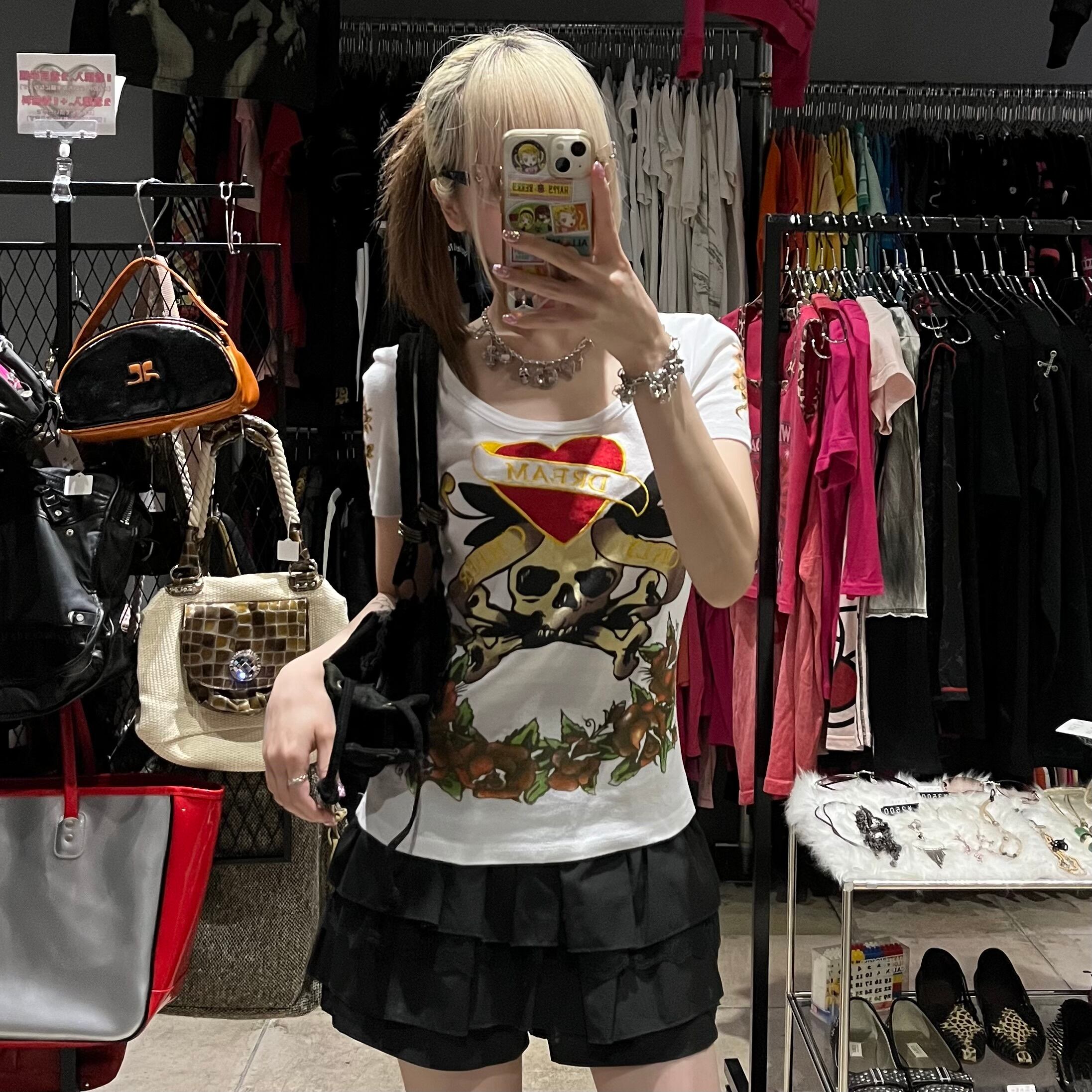 ドクロ ハート 薔薇 ピチT