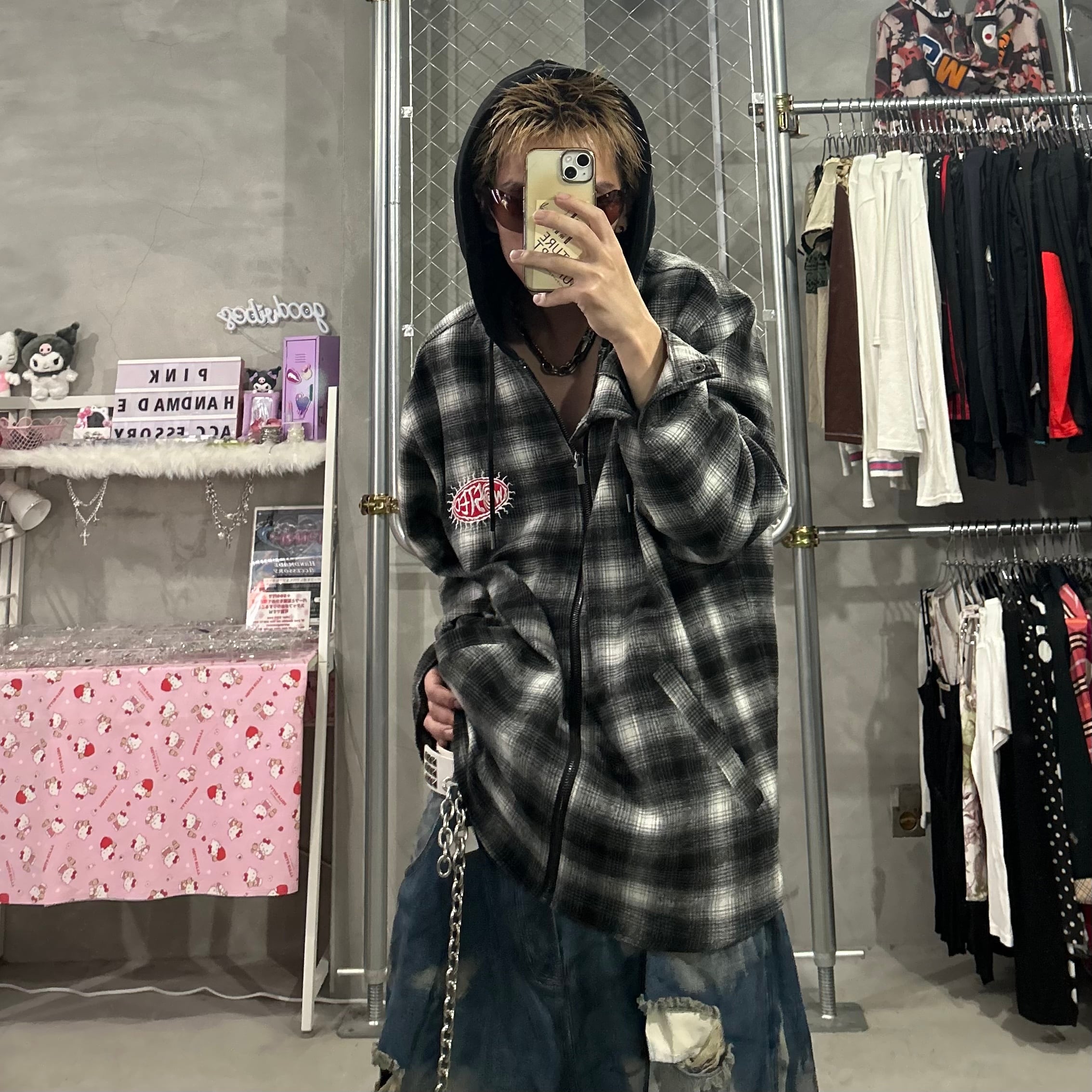フードドッキングチェックシャツ