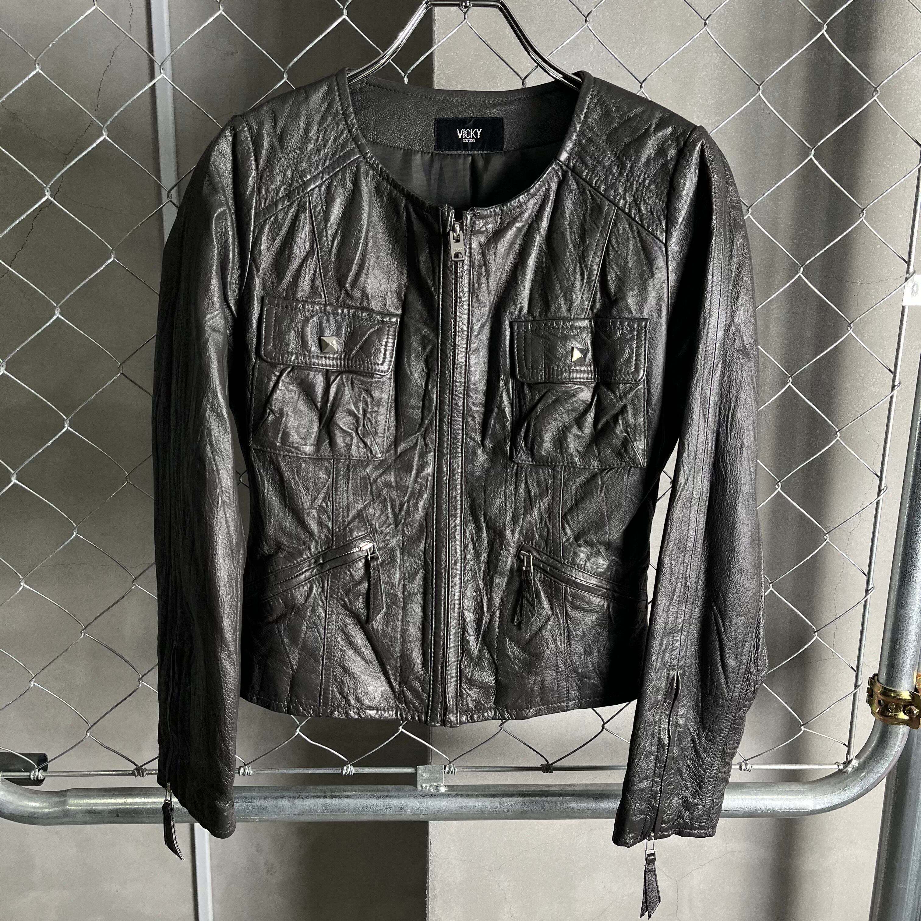 レザージャケット スタッズ グレー