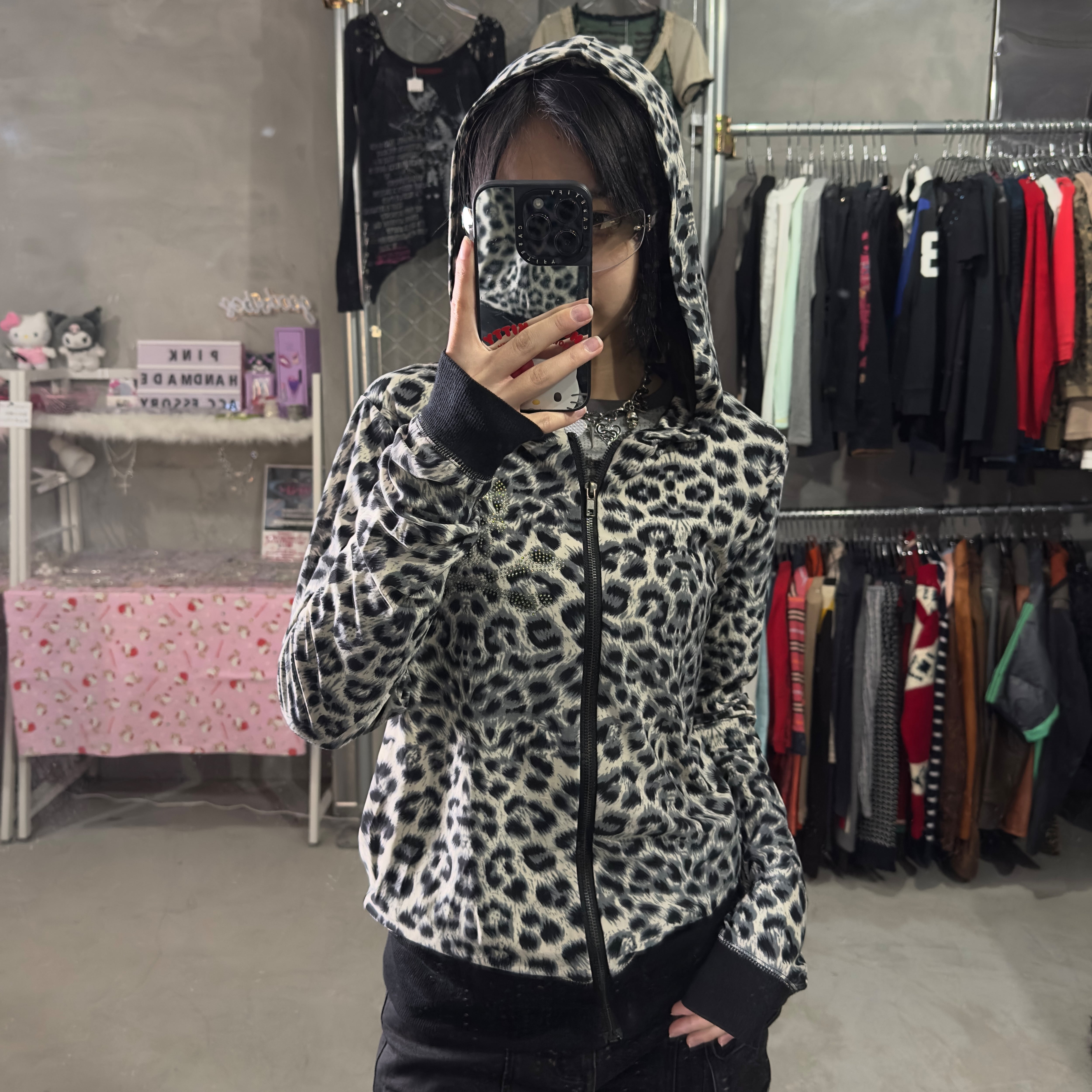 白黒レオパード ジップパーカー
