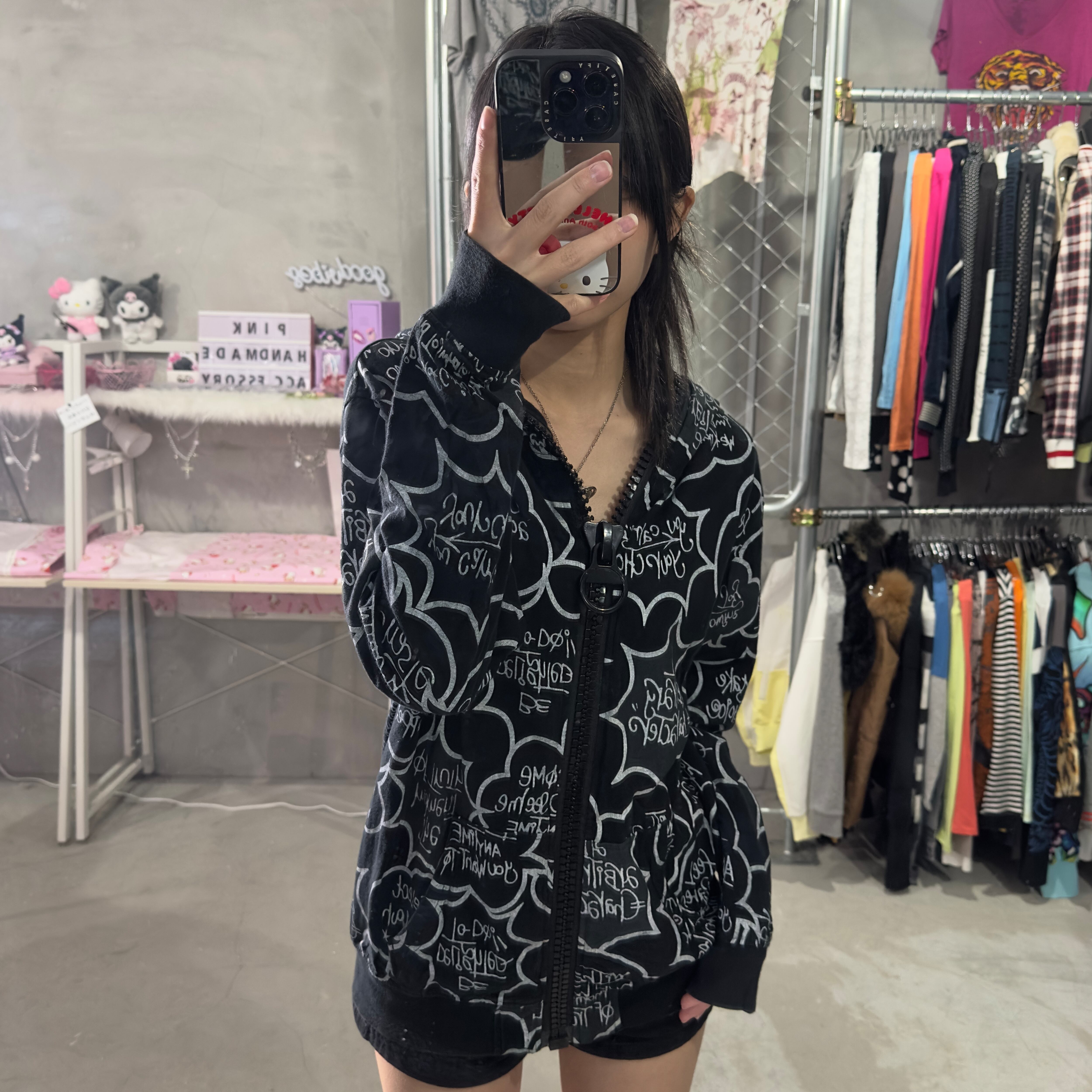 手書き風 総柄ジップパーカー