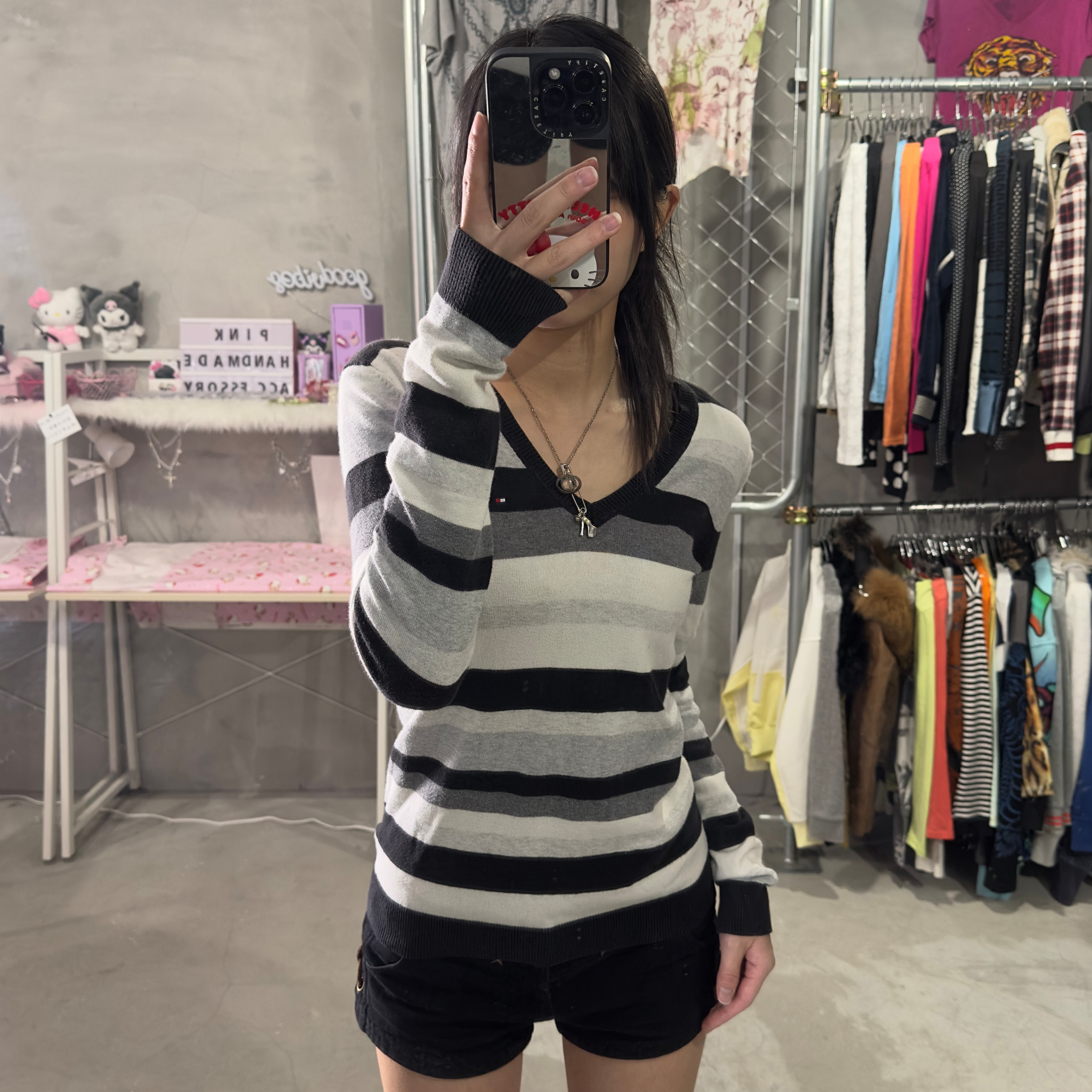 トミー ボーダーVネックニット
