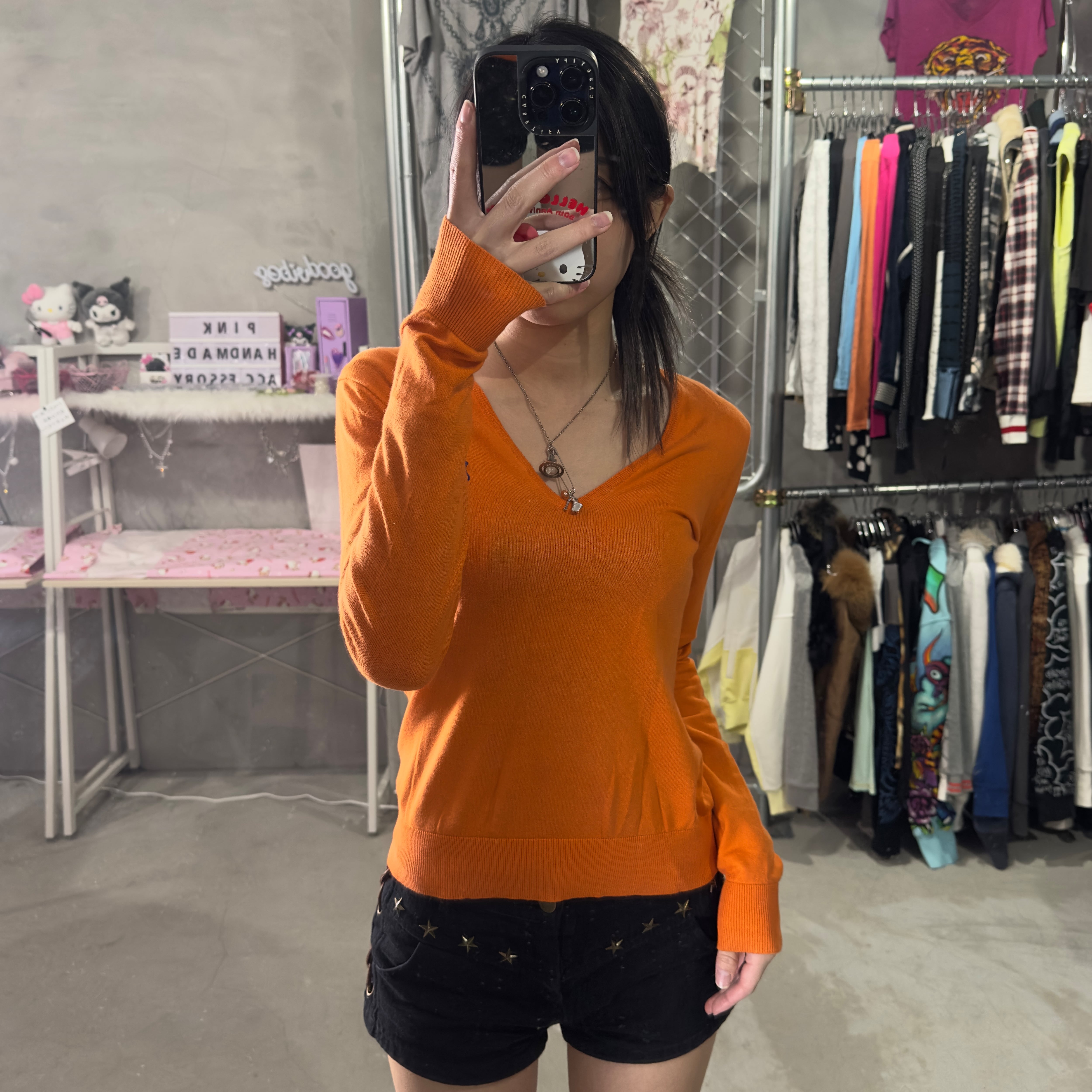ラルフローレン オレンジVネックニット