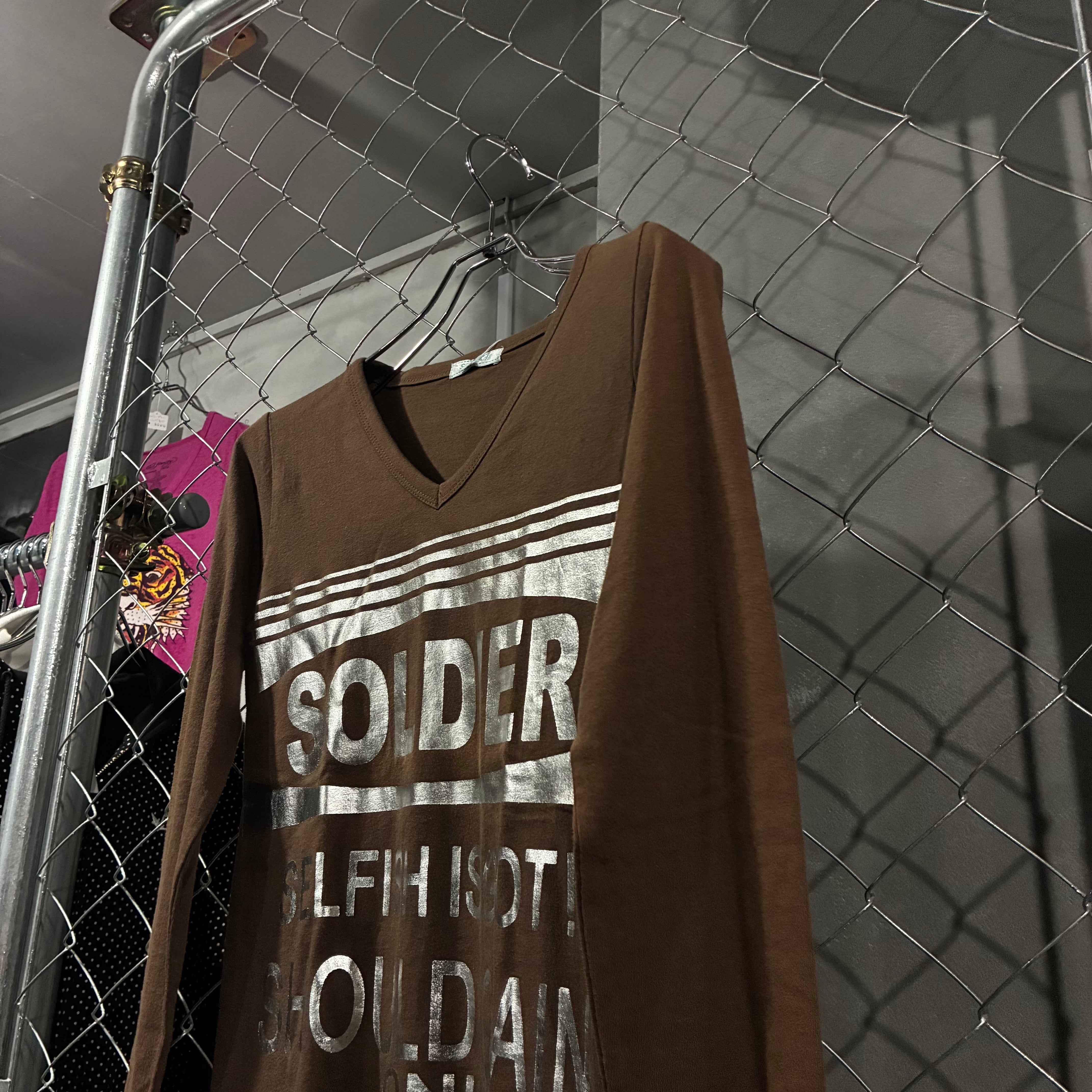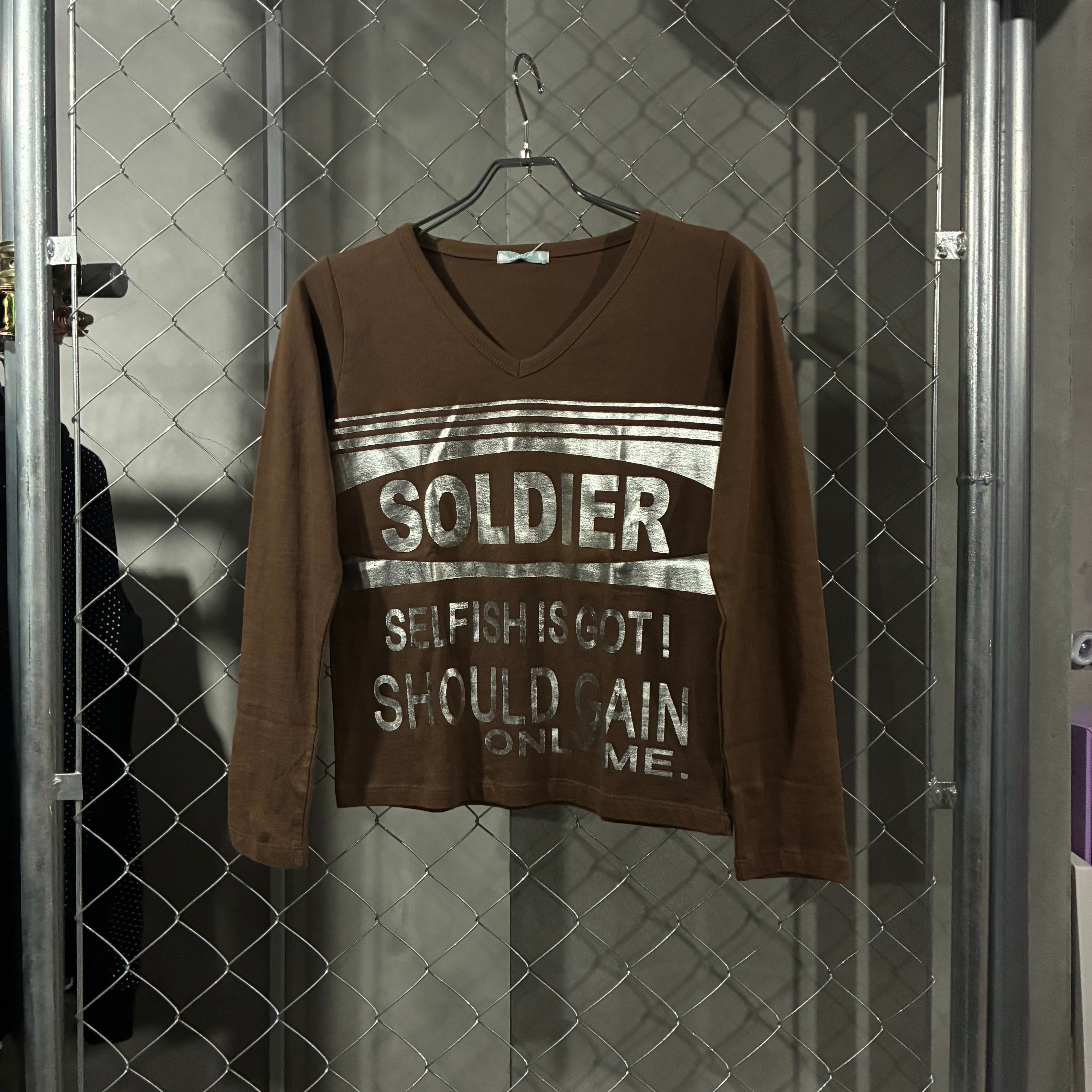 ブラウン VネックロゴロンT