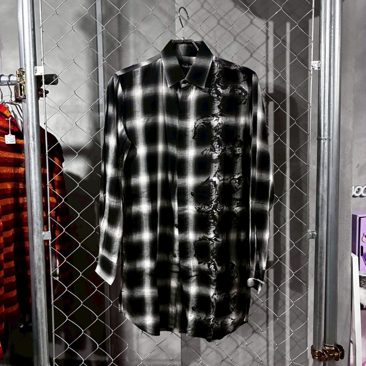 TORNADO MART ダークグラフィック・シャドーチェック・ロングシャツ