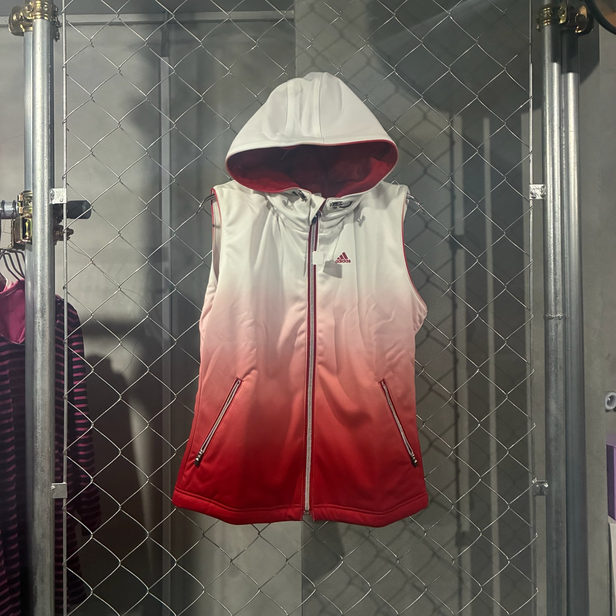 adidas グラデーション赤 フード付きベスト