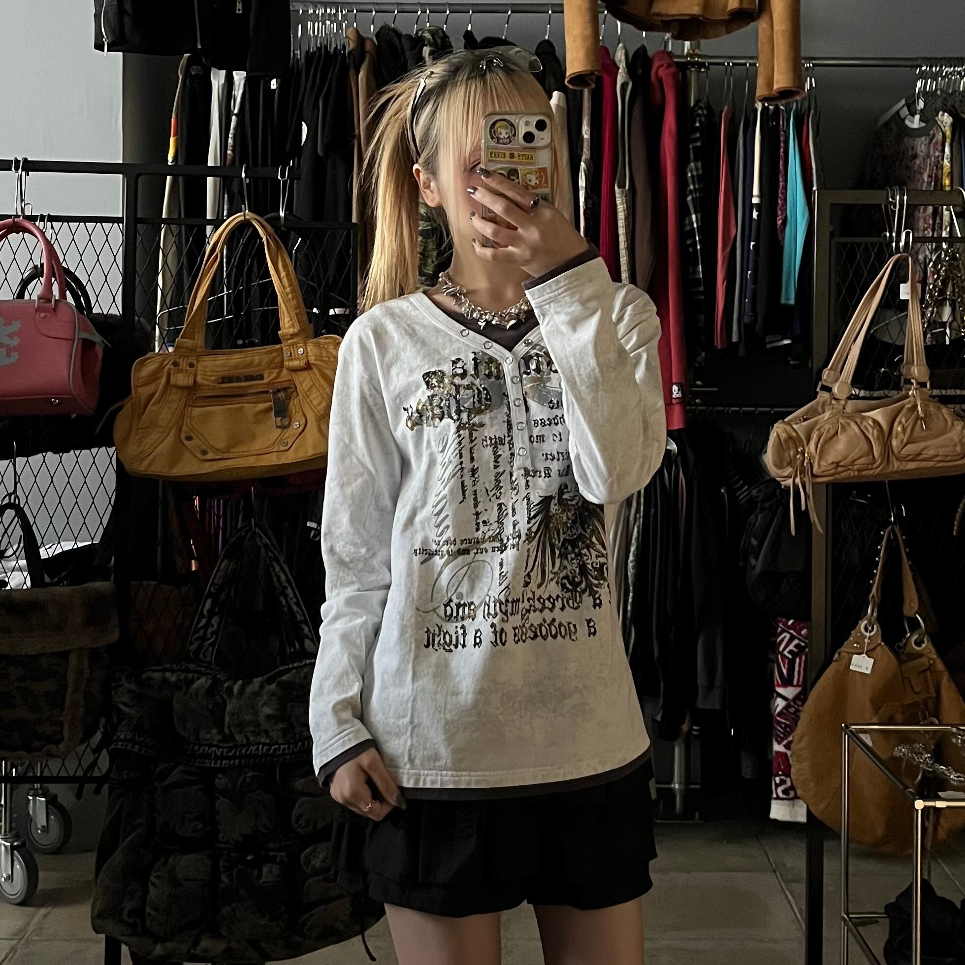 グランジ お兄系 ドッキング 英文字 長袖