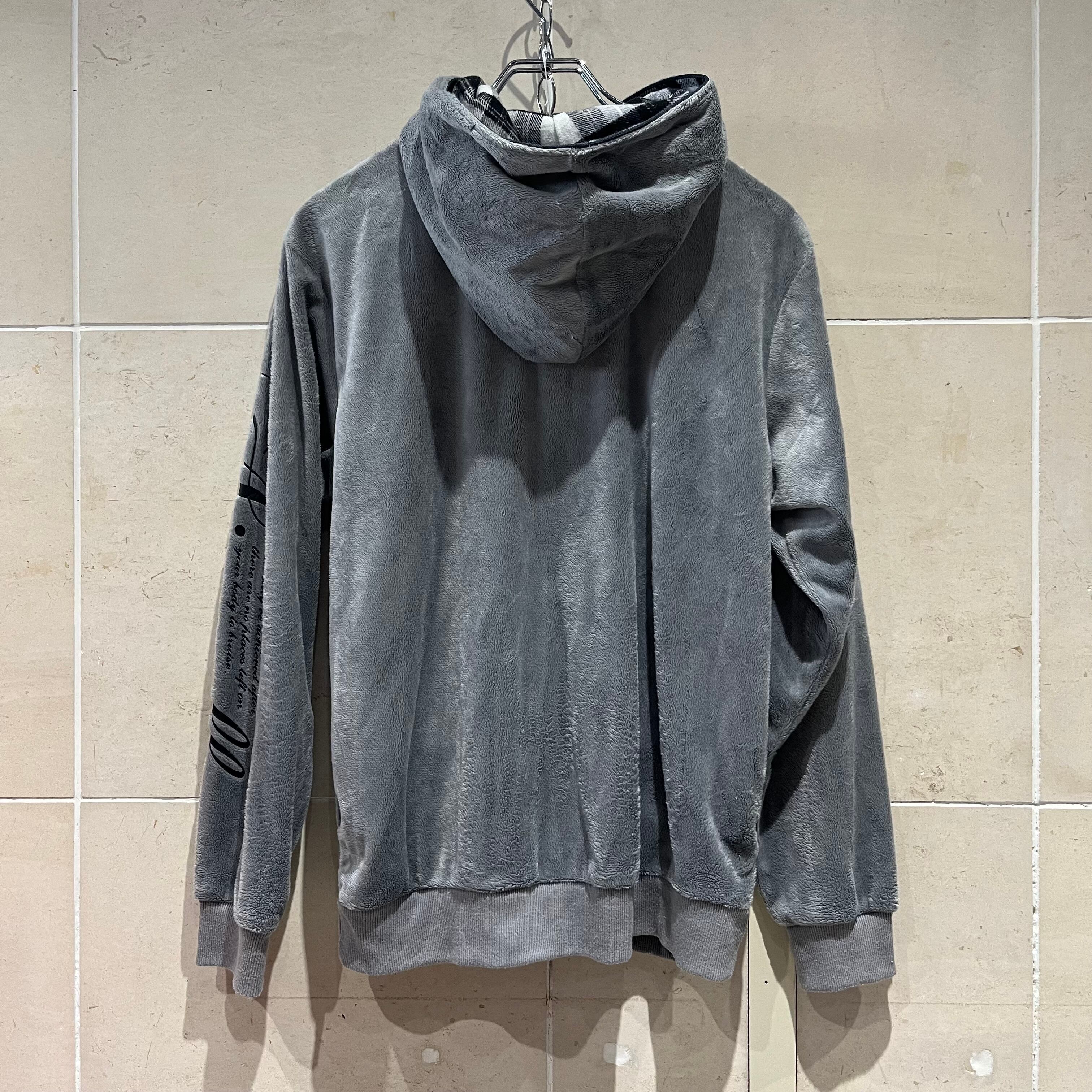 ベロアジップアップパーカー 英字デザイン グランジ