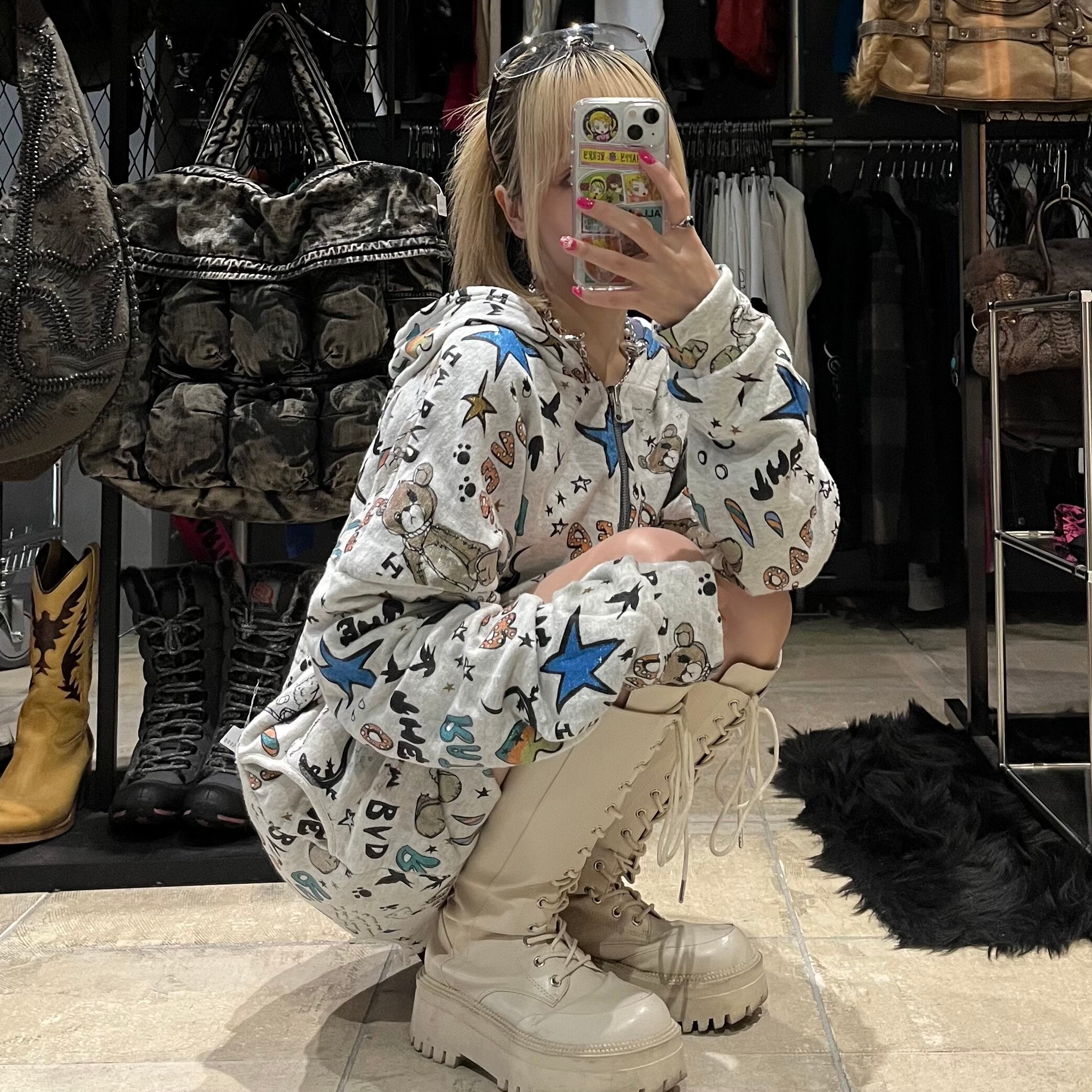 ラメプリント くま パーカー