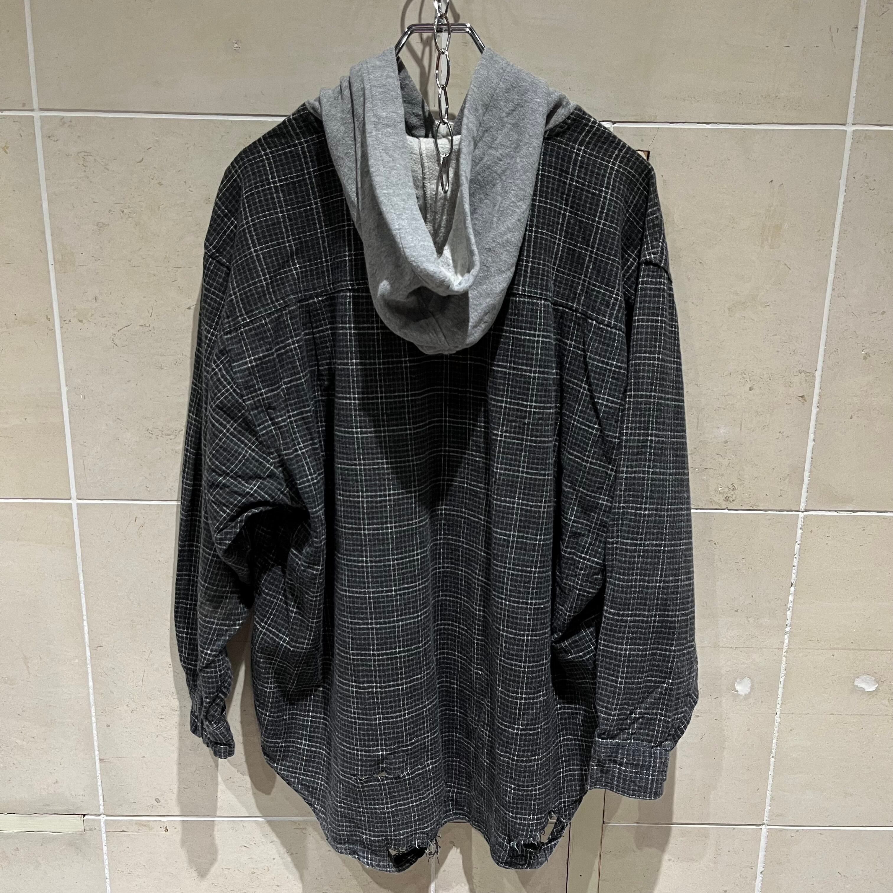 ボロ加工 チェックシャツ フード