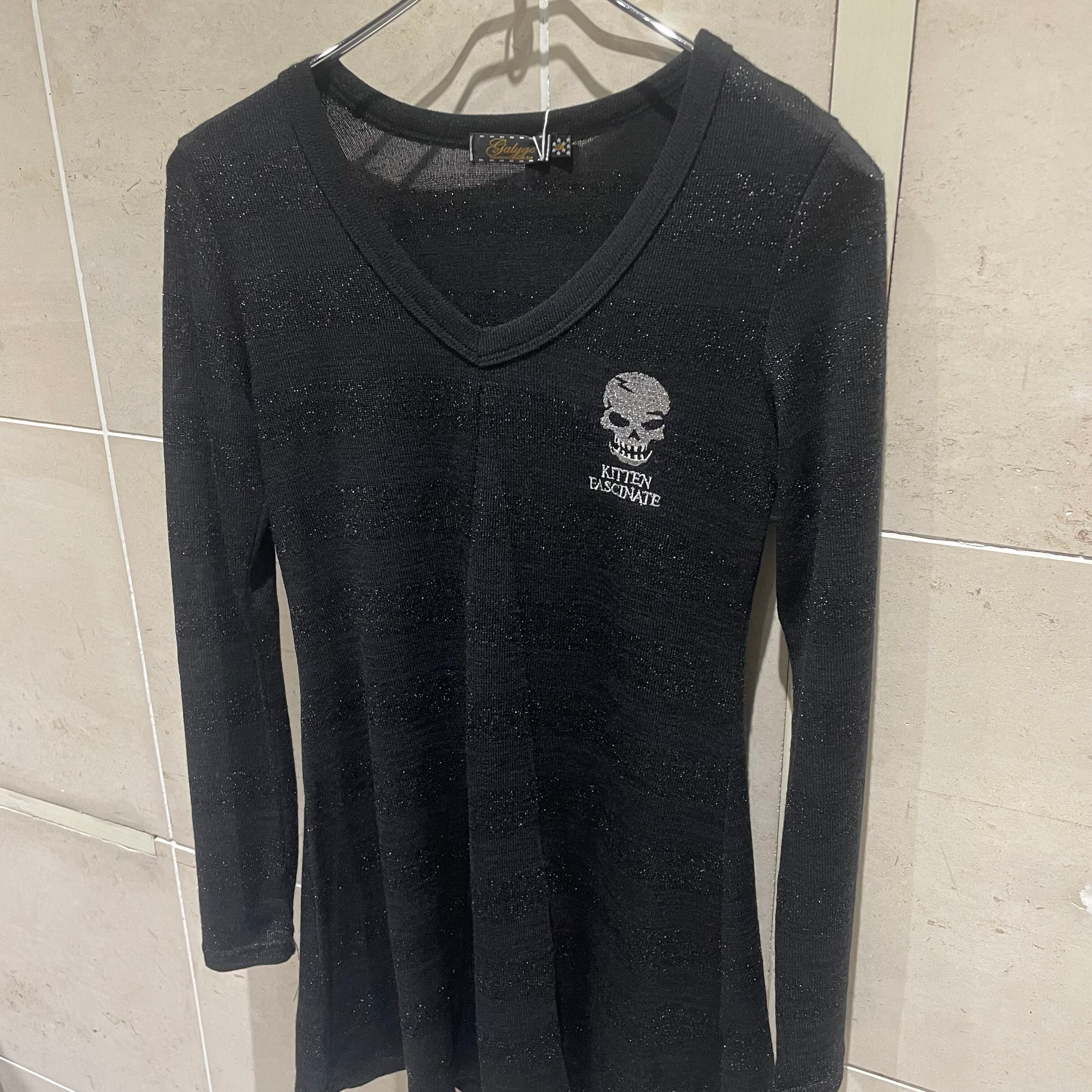 髑髏 ラメボーダー Vネックワンピース
