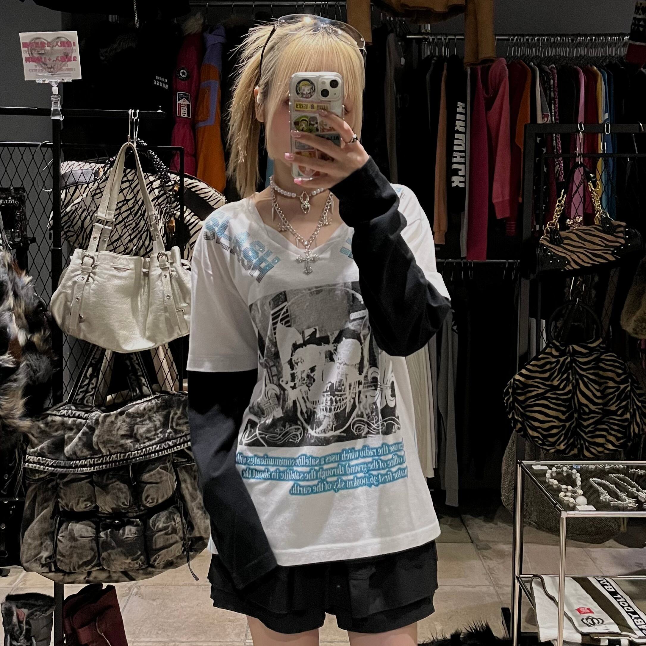 髑髏 ラメプリント ドッキングロンT