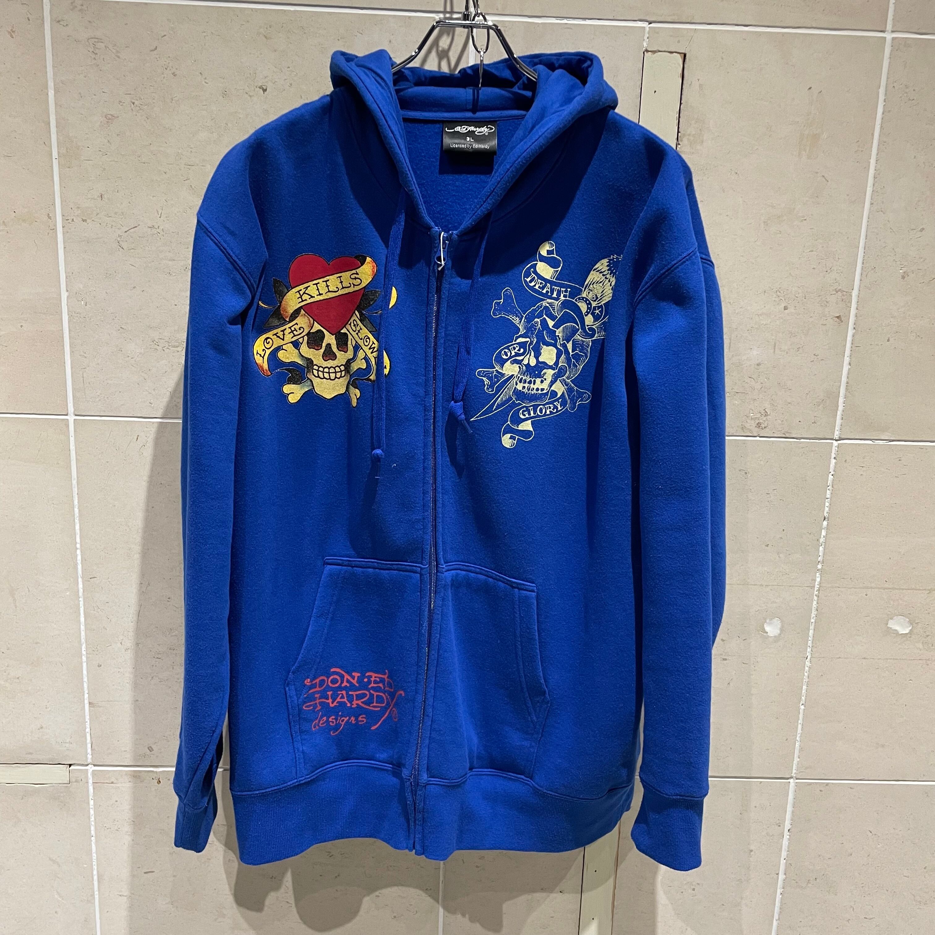エドハーディ ジップアップパーカー アームデザイン オーバーサイズ
