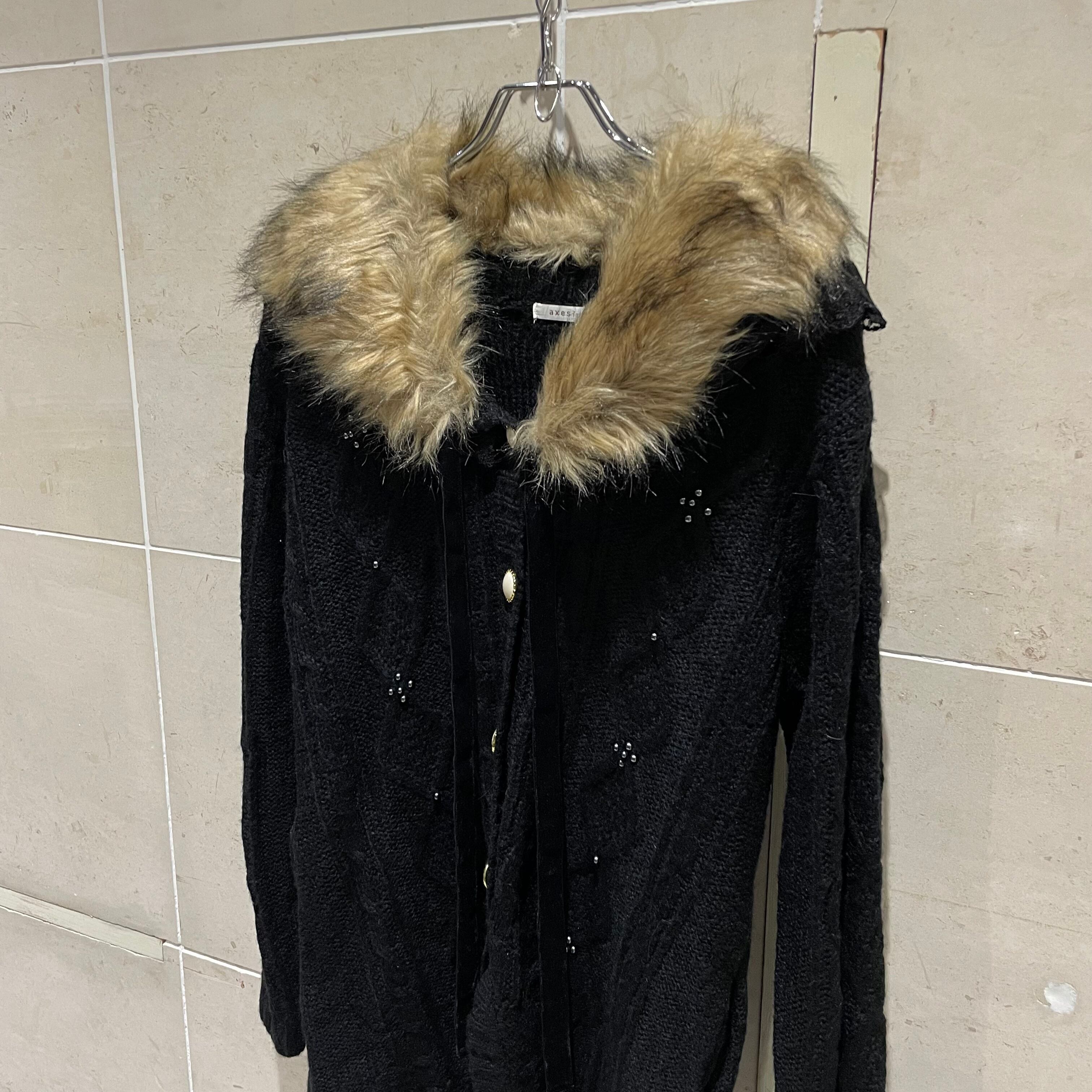 ファー ニットカーディガン ビーズデザイン