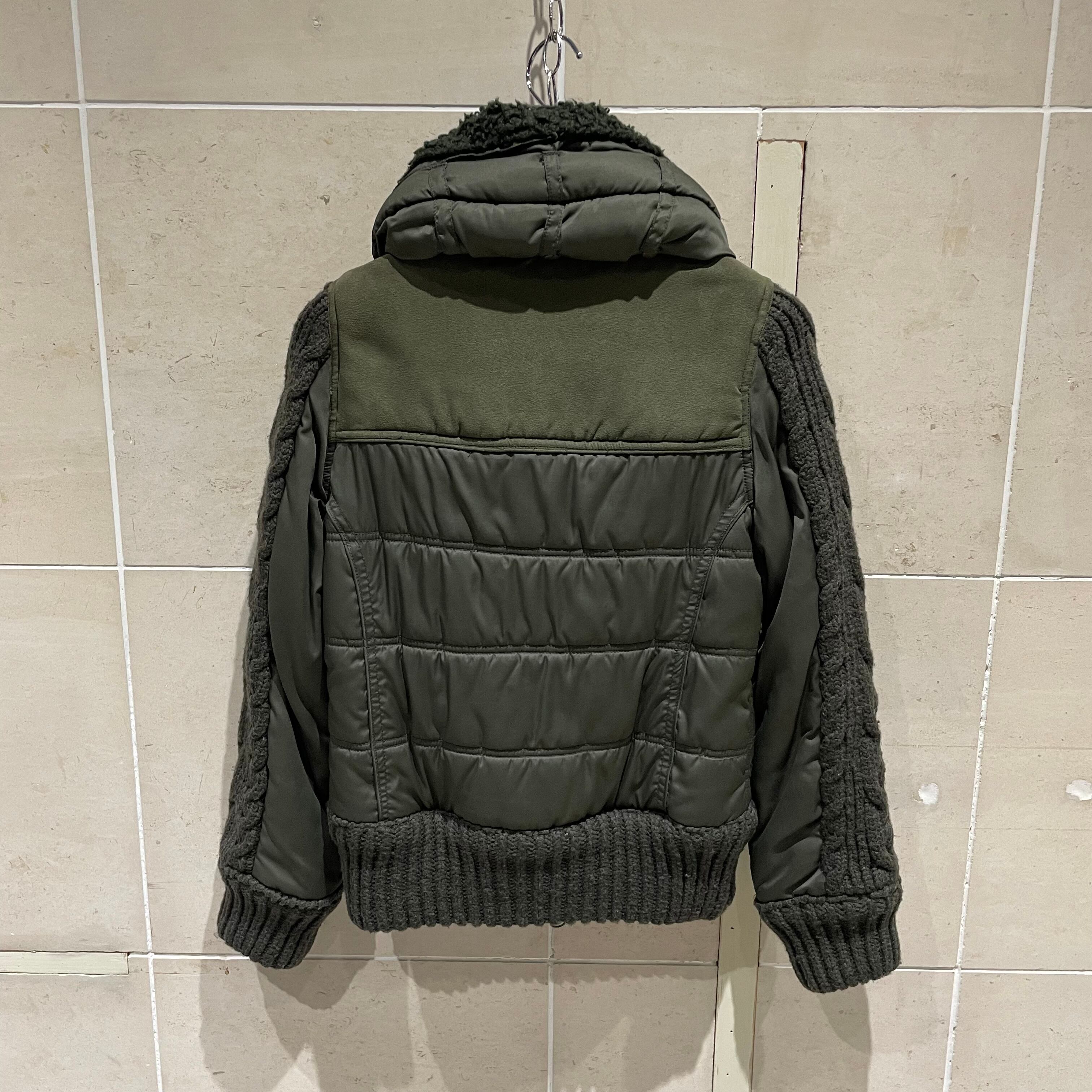 ニット切り替え ダウンジャケット ボア襟