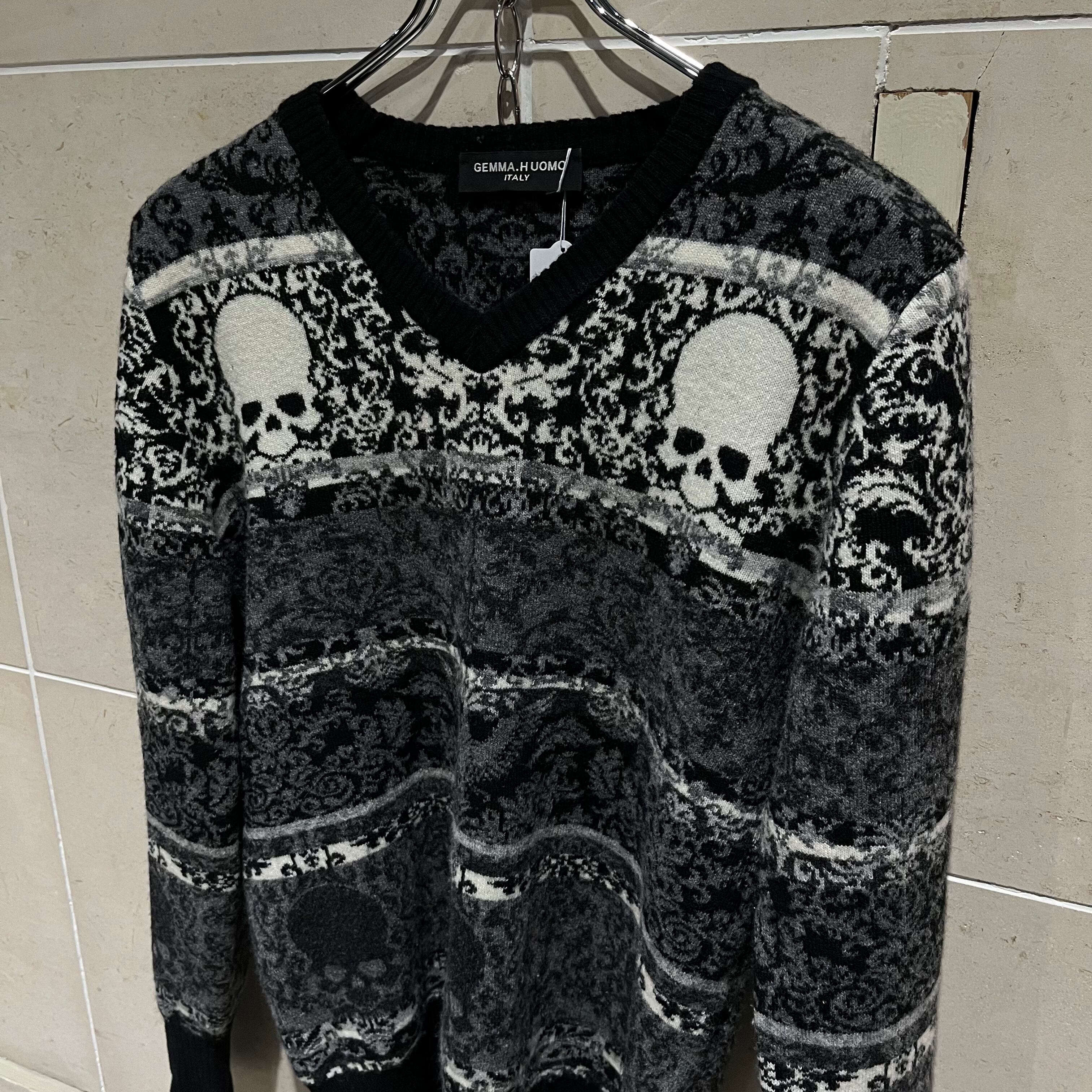 髑髏ニット Vネック グランジ