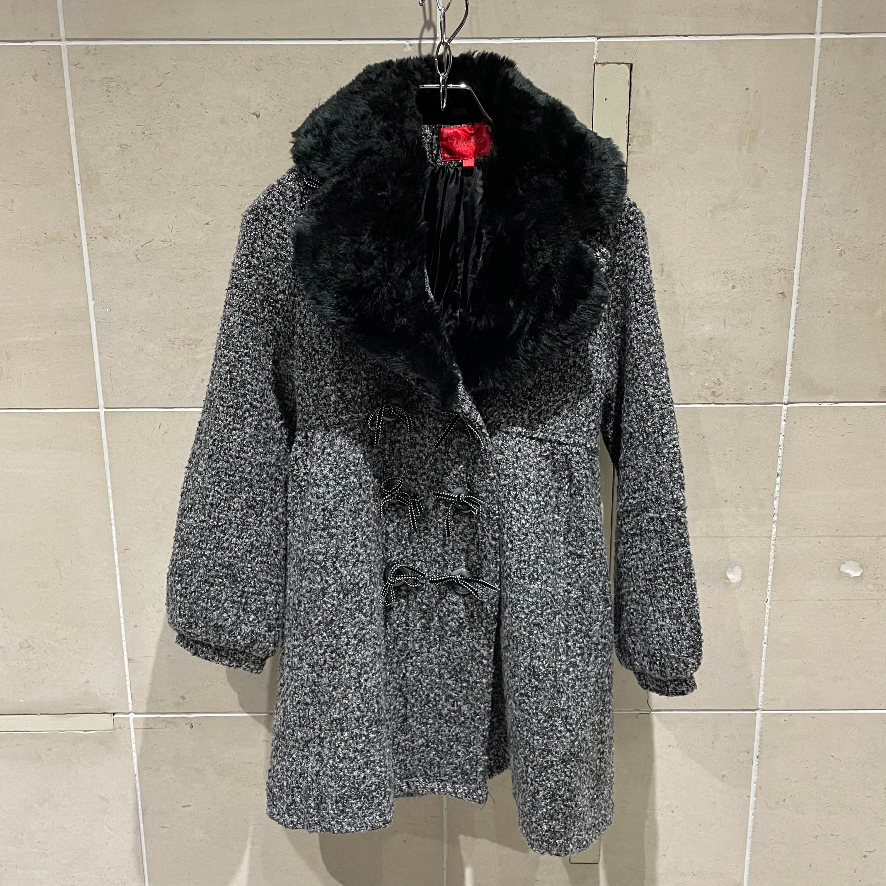 ファーコート リボンデザインボタン