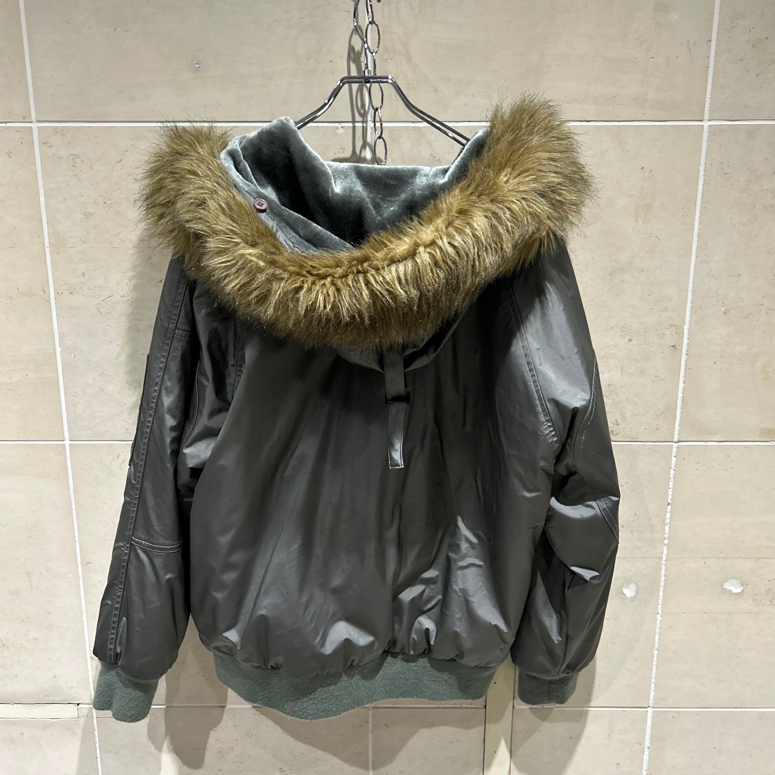 military ボリュームファー シルバー ファーアウター