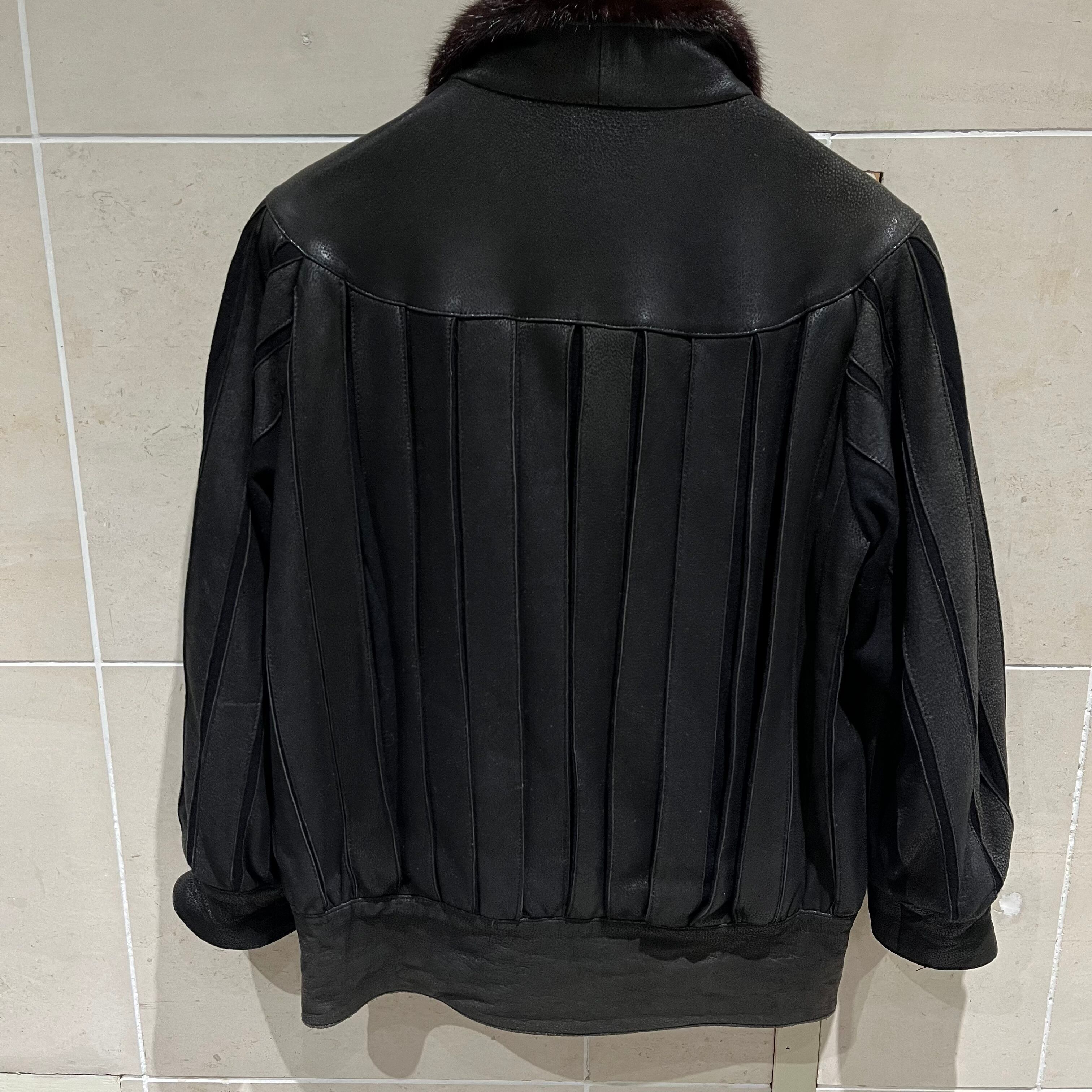 激レア プリーツレザージャケット 短丈 ファー襟